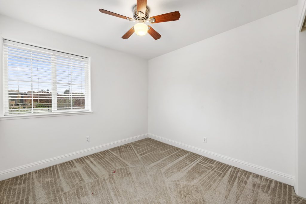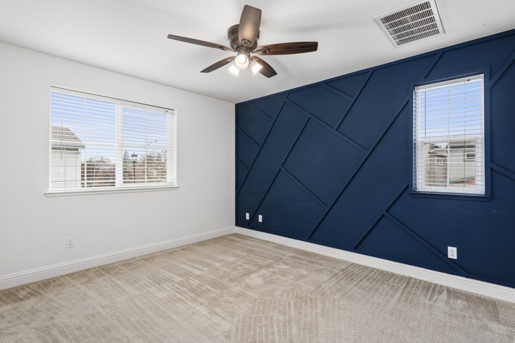 The main level features an open-concept living and dining area with durable laminate flooring, a modern kitchen with stone countertops, and easy access to the attached garage. Upstairs, the private sleeping quarters include a comfortable primary suite with a stall shower, two additional bedrooms, and a full hall bath. Central heating and air, ceiling fans, and in-unit stacked laundry add to the home’s livability.